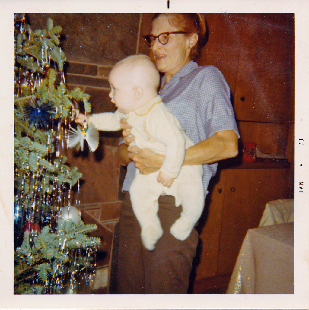 Belva and Van at the tree, Christmas 1969