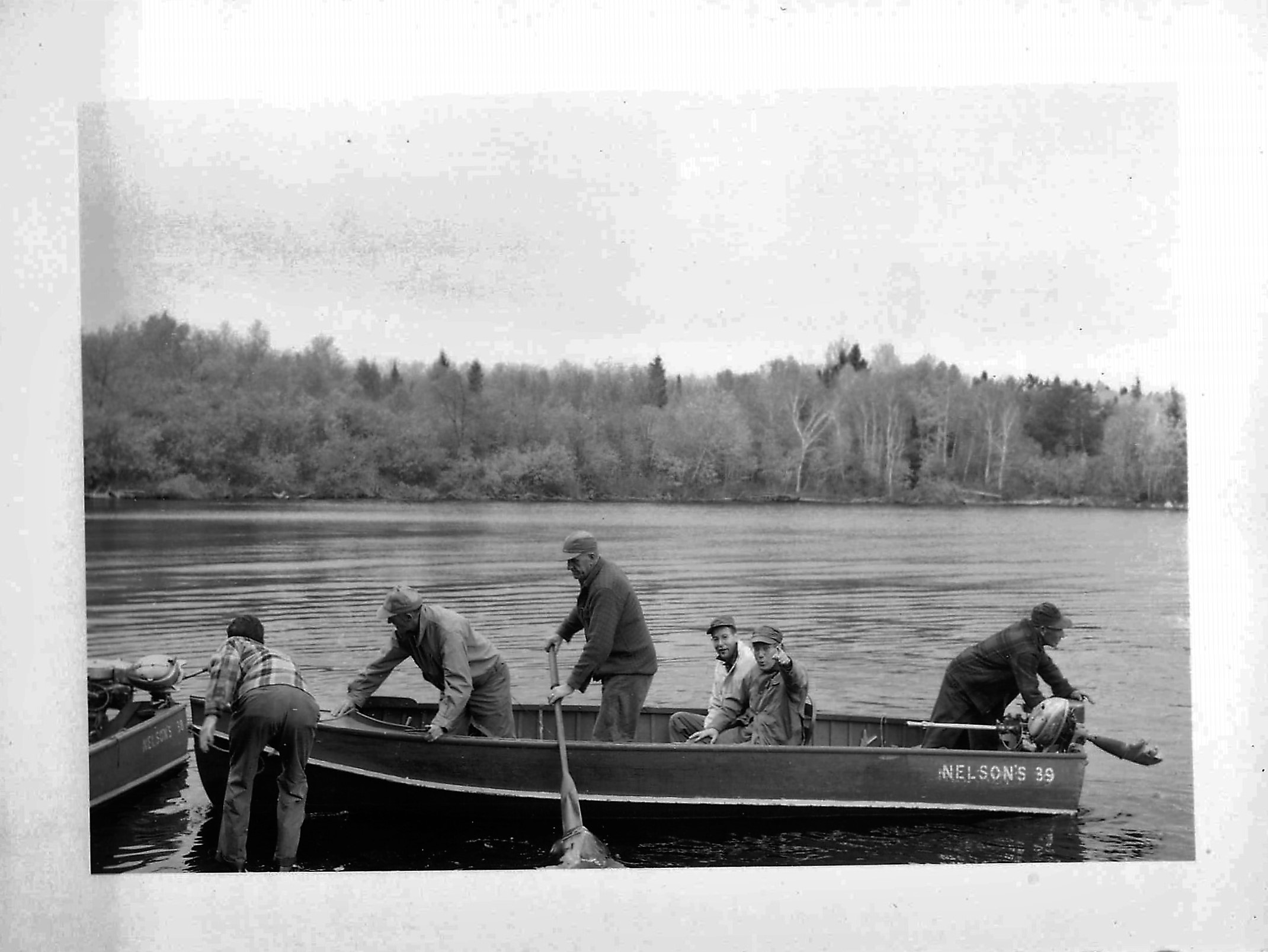 Art Pohlman landing boat, Axel Norlund standing, and Ed Smith sitting