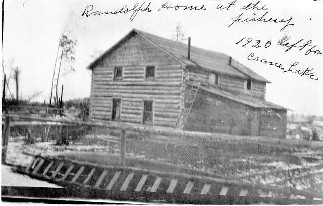 William Randolph home at the fishery on Namakan Lake. Bill and Kate Randolph operated the fishery until they moved to Crane Lake in 1920 to operate Borderland Lodge.