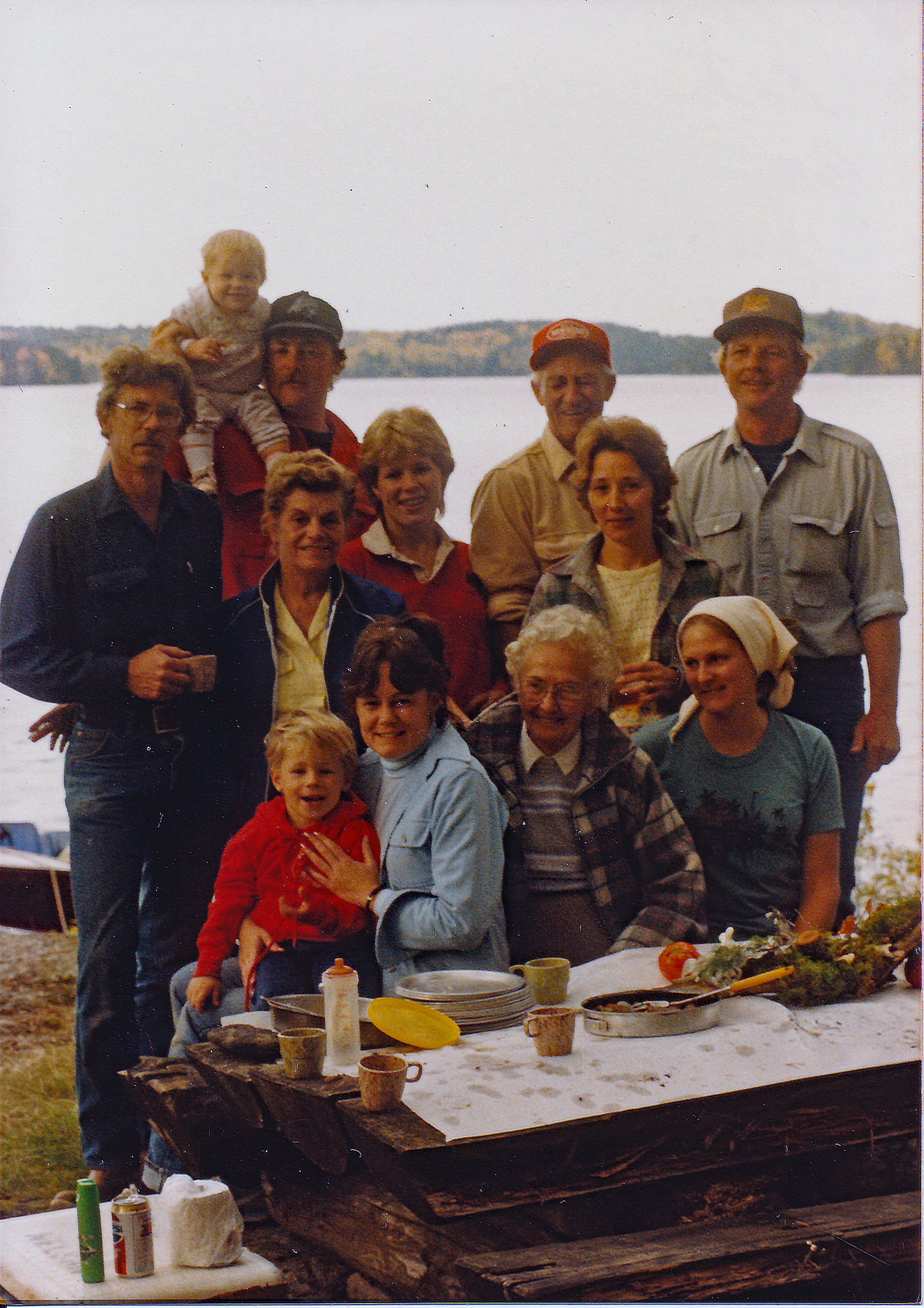 Jim, Jerry and Amanda and Brenda, Betty P next to Jim, Jo and Justin, Betty, Art, Pat, Jacque and Butch